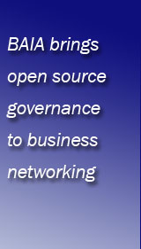 The BAIA approach to business networking is based on an Open Source Governance model.